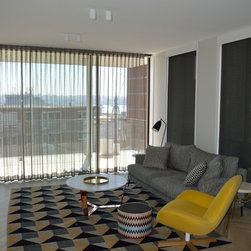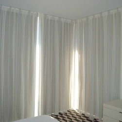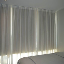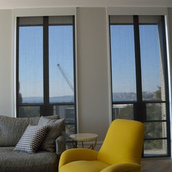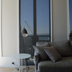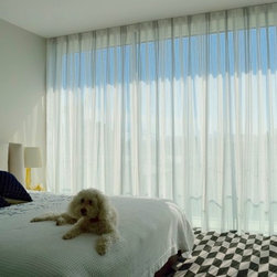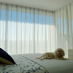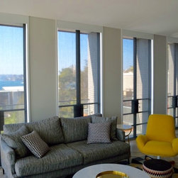 Working closely with the clients of this icon building in Potts Point, Sydney Australia, Rolletna Window Funishings was asked to help design, make and install different styles of window coverings for this contemporary and modern apartment. The brief included motorised sunscreen roller blinds with pelmets, sheer curtains and motorised or electric blockout roller blinds.