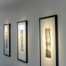 Kitchen, dining and living areas are resolved as a continuous open-plan space, allowing for greater flexibility and connection. The eastern aspect is carefully moderated through integrated automated blinds, balancing natural light with thermal comfort. Lighting design plays a central role, supporting both everyday living and the display of artwork, reinforcing a calm, gallery-like atmosphere.