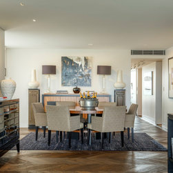 The material palette is restrained and cohesive. American oak herringbone parquet flooring with brass inlay, bespoke integrated joinery, large-format tiling and upgraded building services contribute to a unified and refined interior. Each element is selected for durability, comfort and long-term performance.