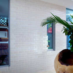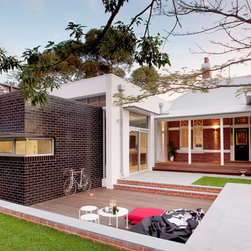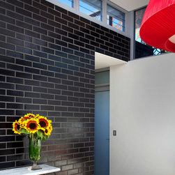 Austral Bricks™ traditional Leonora red bricks complement the original brickwork, while high-gloss black and softly-glazed white bricks create a stunning counterpoint inside and outside the new extension.