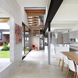 Restrictive covenants, however well intentioned, often become an obstacle to change. The Brisbane suburb of Clayfield has what architect Adrian Spence calls a “timber and tin” covenant. He chose to work around the requirement by placing the masonry on the inside, a system better known as reverse brick veneer. The substantial family home is designed around a courtyard and has four major masonry walls, two to the boundaries and two forming the centre circulation space. Instead of choosing standard grey concrete blocks, the designers specified GB Smooth Masonry with a glowing, polished finish. Why masonry? “I think that climatically timber is not necessarily the best material to use,” Spence asserts. “Masonry is a much more sensible building material even in our climate.” Turning the structure inside-out created an attractive, low maintenance, thermally-efficient interior, proving once again that good design will always find a way.