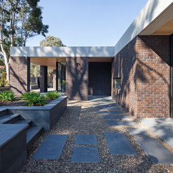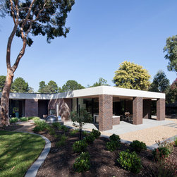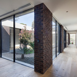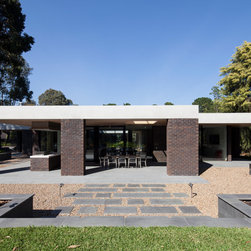 Daniel Robertson Hawthorn bricks, renowned for their use in heritage architecture, also find a home in cutting-edge modern designs such as this house in outer Melbourne. The 950 square metre home is grouped around a central courtyard and situated on a 4000 square metre site. The massive building, home to a semi-retired couple, is constructed on a concrete raft floor slab. All external walls are built in insulated cavity brickwork. The external walls and the brick piers supporting the verandah (which all but rings the house) are face brickwork. The central walls flanking the courtyards also display the brick faces on both sides. The brick partition walls – there are no stud walls – are sheeted with plasterboard. Face brickwork is in keeping with the design philosophy of using low-maintenance, natural materials. “It’s about having robust natural materials and emphasising the texture of those materials,” says the architect John Matyas.