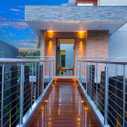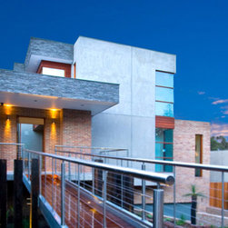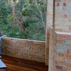 It has since been dubbed the "Hollywood" home and is located in Mount Waverley, a quiet suburb in Melbourne, Victoria. It is strikingly contemporary, and Simon Theobald says the decision to use Daniel Robertson bricks in Roman 50mm Buff Blend bricks was an easy one as they "complement and highlight the natural and built environment". He explains further, “the subtle earthly tones work well against the rich timber and stone façade".