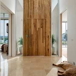 The most prominent feature material of this dramatic home profiled on Grand Designs Australia (series 5, episode 2) is not the massive glazing or even the imported pink marble. It’s the character-filled feature timber used in the front door, expansive kitchen benches and an entertainment unit.