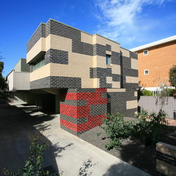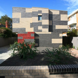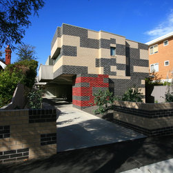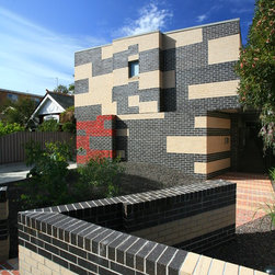 Creative brick patterning adds a lively interest to this apartment block façade and allows the building to transition between its neighbours – a Federation cottage and a 60s walkup.