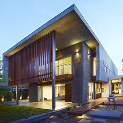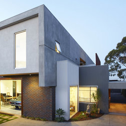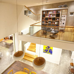 Internally the house is light filled and open, with 28 intertwined spaces over 10 level changes. There are many playful touches including his multi-purpose design office that also houses his prized Mercedes 280SL convertible.