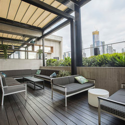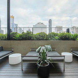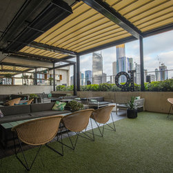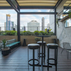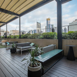 Our first design brief was to design feature gardens for the huge outdoor bar area. The rooftop garden was to span approximately 30mtrs on the edge of the building with Melbourne's city sky line providing a sensation backdrop.
