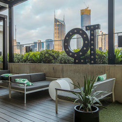 We wanted the planting to be bold, fun and a little quirky, much like the QT brand itself, so we selected a wonderful mix of plants including Agave, Crassula, Raphiolepsis, buxus, senecio, echiverea, native viola, Cycad and more.