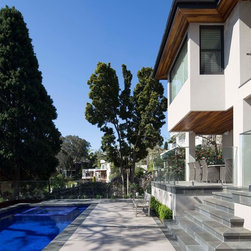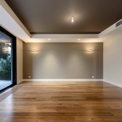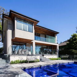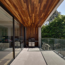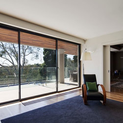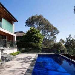 Naughtin added a large open plan kitchen and living area to the rear of the home, orientated to the west and overlooking the new swimming pool. Given the orientation, this addition came with deep eaves lined with spotted gum. “Originally there was a kidney shaped swimming pool, but it was poorly located (on the triangular-shaped site) and didn’t adhere to current standards.”