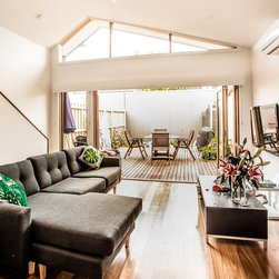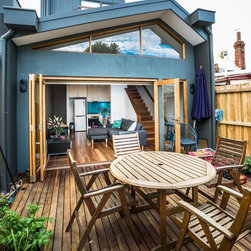 From the street frontage, the existing façade was to remain – albeit with a new strength and looking as shiney and crisp as a new shirt. Substantial underpinning was required to the remaining part of the home in order to reinforce the original foundations of the home. The double storey extension sits neatly into the rear of the home, and the ground floor extension opens the dark cottage up, revealing a light filled, open plan living space.