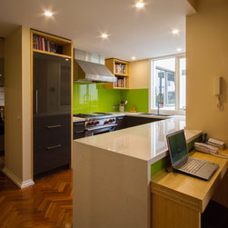 Our clients, Peter and Jenny, have a small house in Richmond that needed a more functional kitchen to suit their cooking needs. Designer, Haydn Bradbury, helped create a more practical space that extended into a butler’s pantry for more storage and workable bench space. In addition, Haydn worked in a small home office/desk space that cleverly hides away all the cables and cords.