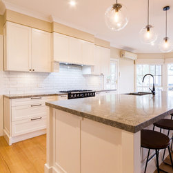 This kitchen is as practical as it is beautiful. Featuring Caesarstone Turbine Grey stone. Elegant and effortless; a truly timeless piece.