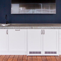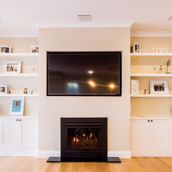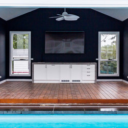 Project includes lounge room storage either side of a fireplace and a pool side patio with outdoor kitchen fit-out.