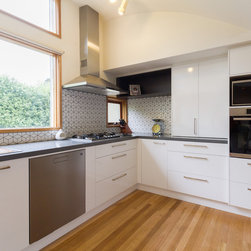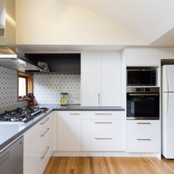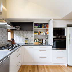 Corey has done a wonderful job designing a kitchen for this rather large space. It's incredibly practical, timeless and the splashback adds a wonderful layer of personality.