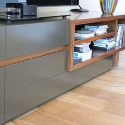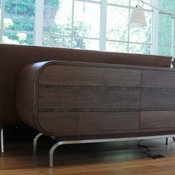Leather bedhead and matching leather drawers were designed especially for the room.