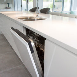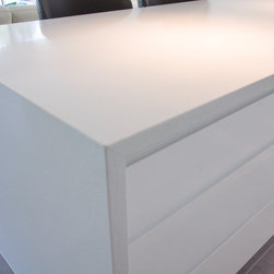 Stone Tops - 40mm Pencil Edge detail "Intense White" Caesarstone with Waterfall ends to Island