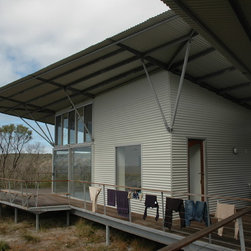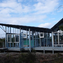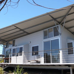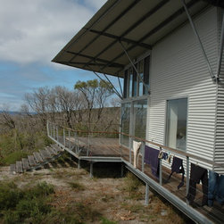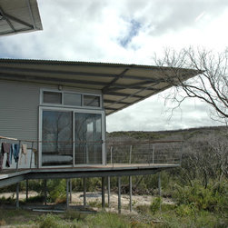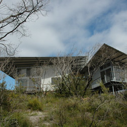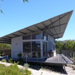 Elegant passive solar beach house on remote south coast Western Australia. Durable, low maintencance materials include prefabricated galvanised steel framing, polished concrete and class 1 timbers. Bush fire sprinkler system.