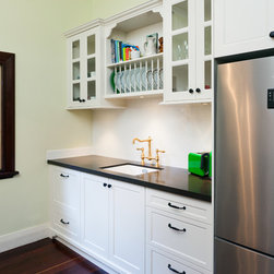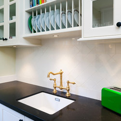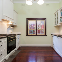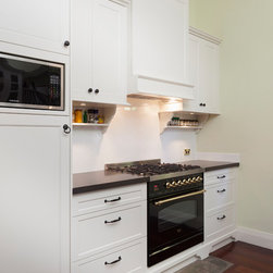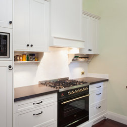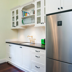 Lovely light and bright kitchen making use of every inch of bench and storage space. Benchtops are Caesarstone Emperadoro.