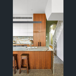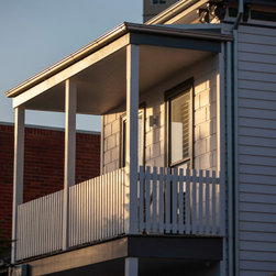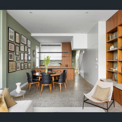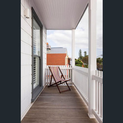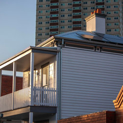 The design begins with repair and patience. Where original fabric could be revived it was kept; the central staircase, ceiling roses and other heritage elements were carefully conserved and re-introduced. The front verandah, long lost, was rebuilt with reference to nearby period houses, giving the street elevation a quiet continuity with its neighbours.
