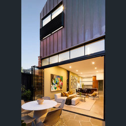 Steel-framed doors fold open to the garden and alfresco areas, bringing daylight deep into the living spaces and dissolving the boundary between inside and out. Solar panels and keyless access speak to performance without spectacle, letting comfort be felt rather than boasted.
