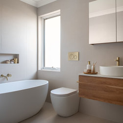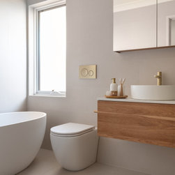 A key challenge of the project was the inclusion of a third toilet for the home, which was not originally part of the space. We strategically changed the size of the vanity to accommodate an in-wall cistern toilet, adding valuable functionality for the family. This design choice not only maximised space but also enhanced the overall utility of the bathroom, making it more suitable for the needs of the household.
