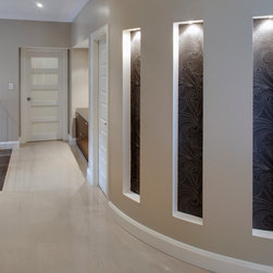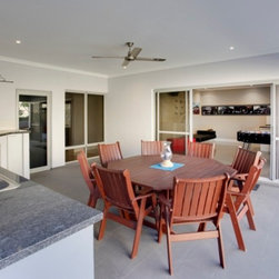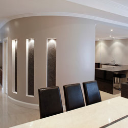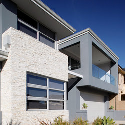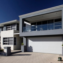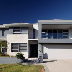 The home has a strong sense of local identity reflecting the character of coastal living through the incorporation of modern building materials, texture, colour and form. In particular, the front elevation combines a rendered exterior with contemporary stone cladding, frameless glass balustrading, a modern sectional garage door with frosted infill panels and a Colorbond® Ultra roof especially designed to withstand the locale’s coastal conditions.