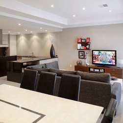 This stunning two-storey home was constructed on the edge of the Indian Ocean within the elevated coastal community of Port Coogee, five kilometres south of Fremantle. The home accommodates a young family of four with an innovative floor plan that not only adds a sense of space and separation to family living, but allows the owners to enjoy uninterrupted views across the world-class Port Coogee Marina from the upper-living level.