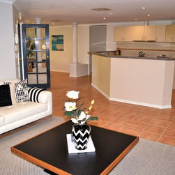 Step inside the house and see the versatile, tiled open plan kitchen, lounge and dining area, all brightly lit with down-lights. The kitchen is complete with a five burner gas cook top, electrical oven, plenty of storage, a Fisher & Paykel dishwasher.