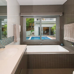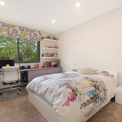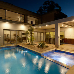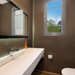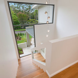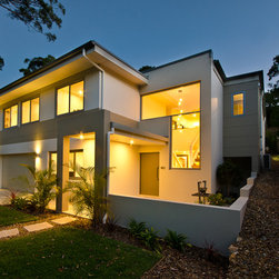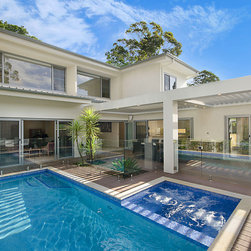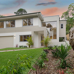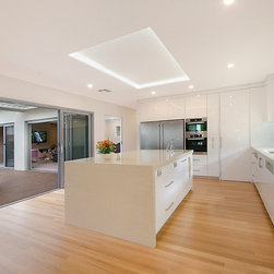 As part of their personalized service, Steve and Seth Nafte from Blue Label Construction provided drawings from their award winning home in Western Australia as inspiration for the design of this home. This north facing luxury three storey home, nestled amongst the tree tops of St Ives, is both home and work place to a modern busy family, incorporating both office and open plan living areas. Entering at the lower level is a professional home office and double garage allowing separate and private workspace without intruding on the family life above.