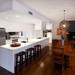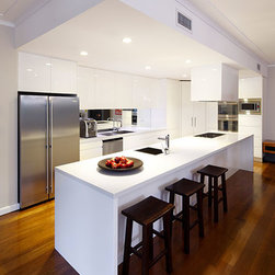 Great modern kitchens incorporate functionality and timeless design, and this St Ives kitchen is no exception. The full-length island with waterfall ends includes a preparation sink and cooktop, creating a sociable workspace for family time and entertaining. The bench opposite is surrounded by...