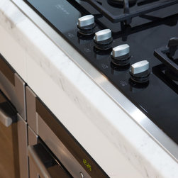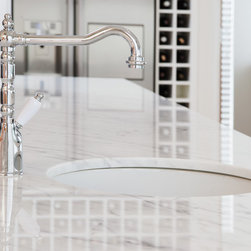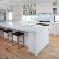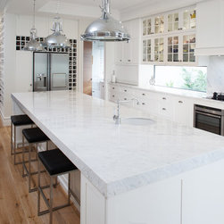 The beautiful marble featured in this kitchen is Statuarietto marble polished (High Range). The doors are a satin lacquer to colour match Laminex White.