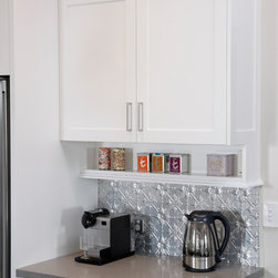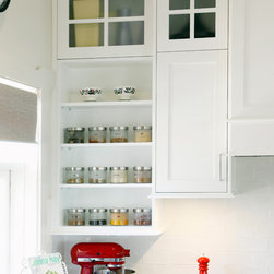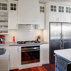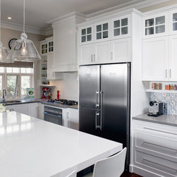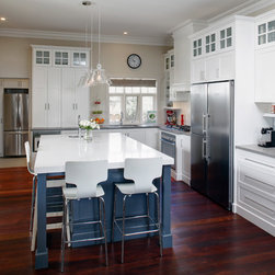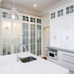 Stunning Hamptons style kitchen with tall cabinets and glass for display.