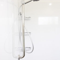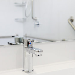 Along with standard handrails, we fitted a special wall-mounted toilet, a walk-in shower base and taps that can be turned with ease. Just because a bathroom is designed to improve access, doesn’t mean it has to look dull and uninteresting. Bathtime Bathrooms installed classic white wall tiles complimented by Sahara 600mm x 300mm floor tiles. A Timberline wall-mounted vanity unit matches the colour of the floor tiles. Other safety-focused features include: