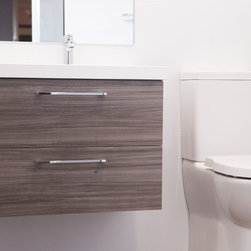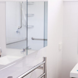 * A towel rail set under the bathroom cabinet and not jutting out into the open space,