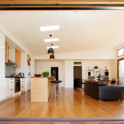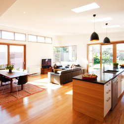 The Tamar Street house addition created an antidote to the four square high Victorian frontage. The new Living and service spaces are light filled, generous and simple in form and detail. The new spaces embrace the garden and maximize a controlled the northern exposure. The palette arises from the bones of the old house – a brick base, cedar ceiling linings and travertine pavers yet all is redeployed in a contemporary manner.