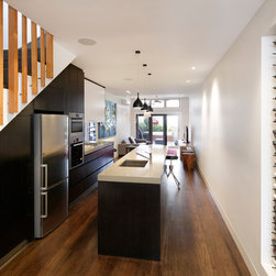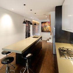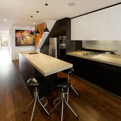 This inner-city kitchen design transformed a dysfunctional space into a stunning contemporary statement, the owner of this home couldn’t be more delighted with his new kitchen. Located on the ground floor of an inner-city terrace, the kitchen has typically narrow dimensions, so the use of space was pivotal to the outcome of this project.