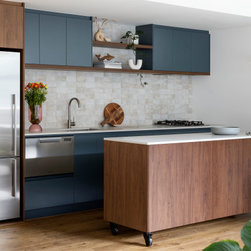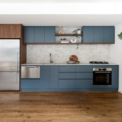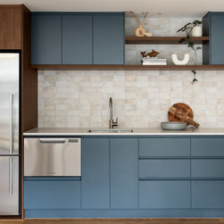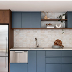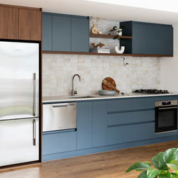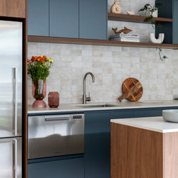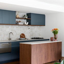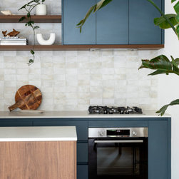 By blending cabinetry finishes, we created a showpiece very different from your stock-standard kitchen and by adding the hand-made Spanish tiles to the splashback, we were able to soften the harsh edges of the cabinetry.