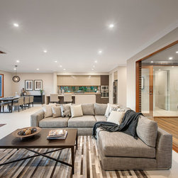 The living area is situated between the alfresco area and the additional courtyard. This way, the living space can be confined to lounging for cosy family nights, or extended into the exterior when the space for entertaining is required.
