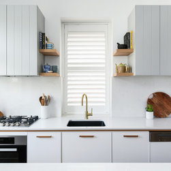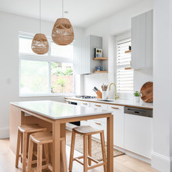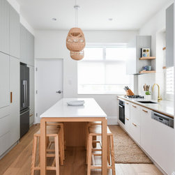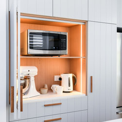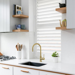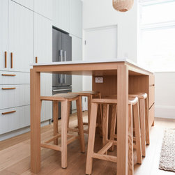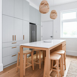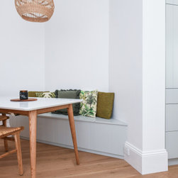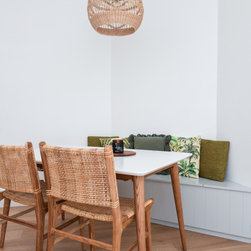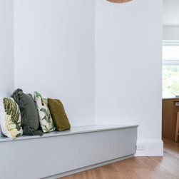 Thin Shaker Cabinetry | V Groove Joinery | Banquette Seating | Coastal Kitchen