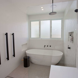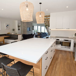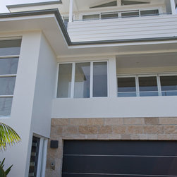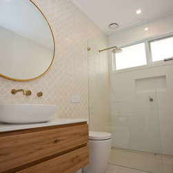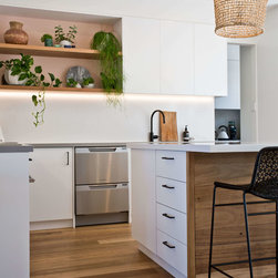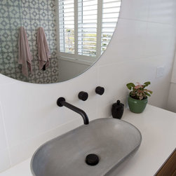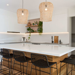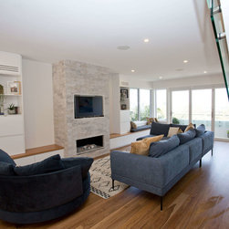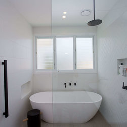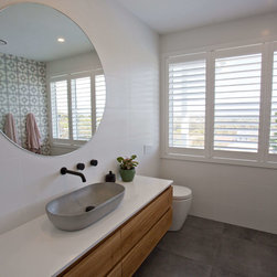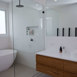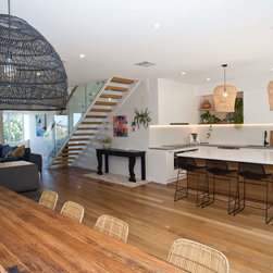 Love this new home build! Finished in 2018 and situated in Curl Curl on Sydney's Northern beaches, the master bedroom has sweeping views over Curly. We've uploaded a snapshot of photos from this project but you'll be able to find more on the Beecraft website (beecraft.com.au). The bathrooms all include beautiful timber vanities with lovely tiles from Tiles by Kate that make you feel warm and fuzzy from the moment you step in the door. The kitchen, featuring a large island bench, is both stylish and practical with ample storage space, white cabinetry and gorgeous timber flooring. This opens up into the dining and living rooms where you can open up the door and windows in summer, or sit around the fire in winter. When we took the photos we were just wrapping up the gardens so what you can't see is the pool out the back, and tropical gardens showcasing amazing palms and plants sourced from the Beecraft Nursery. An incredible home so check out the photos for a sneak peak and jump over to the Beecraft Nursery for more.