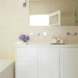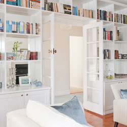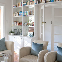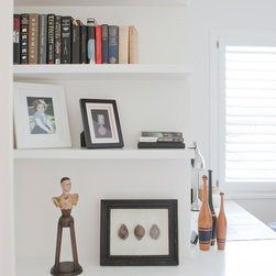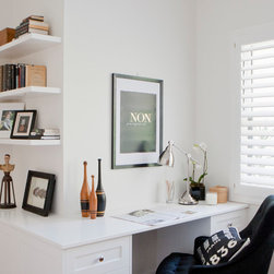 I was engaged by the owner's of this lovely art deco home in Sydney's North to assist them with transforming their home into a more classic aesthetic. The home required some reconfiguration of spaces to maximise the potential of the home for this young family. A previously unused front room was transformed into a relaxing living room with custom bookshelves. We were able to integrate some family heirloom furniture items into the design without compromising the aesthetic. A smaller room was converted to a home study with custom joinery to maximise the space and a hallway and small WC was converted to a full bathroom. A classic blue, white and beige colour scheme continued throughout the home to complement the classic design.