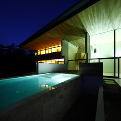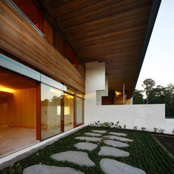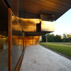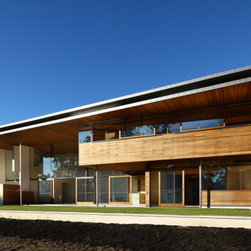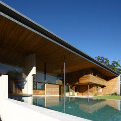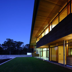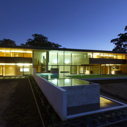 Siting of the residence has been carefully considered to respond to environmental conditions, and to control the transition from the designed landscape of the residence to the natural bushland beyond. The residence occupies a solid plinth with serves to separate the main building from the landscape and assist in the clear delineation of the made landscape and the landscape in its natural state. Photo credits: Scott Burrows