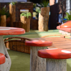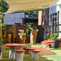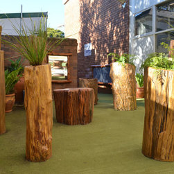 Supporting the local community is very important, so when asked to rejuvenate a tired outside space, we didnt hesitate. The brief was clear, it shouldnt be a plastic playground, but a space that would ignite the imagination, offer different activity area's for groups and individuals and most importantly promote natural products and native plants found in the local area. Working with the parents group we developed a masterplan, which enables the kindergarten to stage the works, when time and funding will allow. The design was brought to life by Andrew at www.timber creations.com.au and we luv his mushroom seats, troll bridge, crazy mirror and the enchanted forest. Cant wait for stage 2 works.