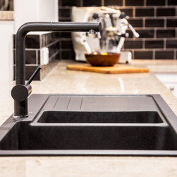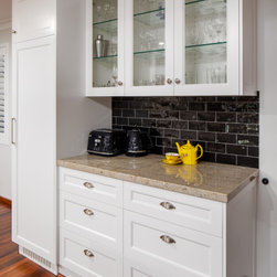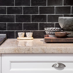 Pantry benchtop is Laminex Nero Grafite natural finish.