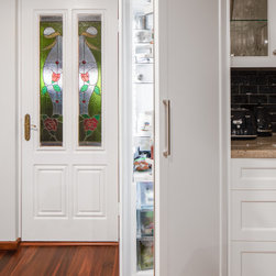 Traditional kitchen with gorgeous stained glass feature