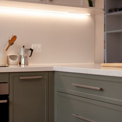 This traditional style kitchen was a pleasure to design, with it's shaker doors painted in a funky khaki green, the owners personality truly shone through in this space.