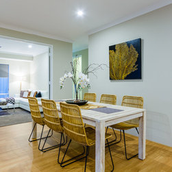Brand spanking new and with a flourish of inspired style throughout, this trendy, centrally located four bedroom two bathroom provides an unprecedented lifestyle opportunity for both couples and families alike. Upon the large entry you’ll be delighted by the earthy tones of wood floors exuding homely warmth, in conjunction with sleek contemporary finishes. Clear living zones are well defined, and flow seamlessly amongst one another, with the Vogue kitchen, family and dining areas establishing the hub of the home, whilst double doors to a formal lounge/theatre room presents as an ideal entertaining area. All bedrooms are doubles, with well-appointed robes, whilst the master is the pick of the rooms, boasting an enormous walk-in-robe, and the epitome of luxury shown in the ensuite.