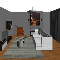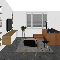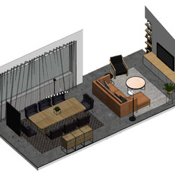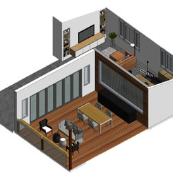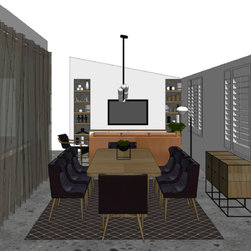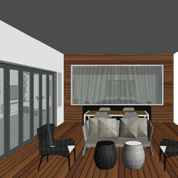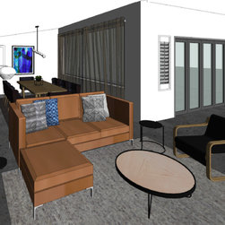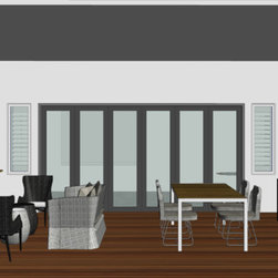 The clients' brief was to add excitement, sophistication and turn it into an entertainer's paradise. We chose natural materials such as leather, oak and seagrass to blend with the bamboo floor boards and juxtapose with the polished concrete floors at the back of the house.