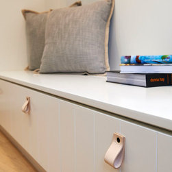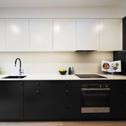 TV (Love It or List It) | Monochromatic Black Cabinetry Minimalist | Bench seat
