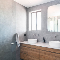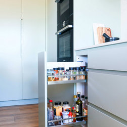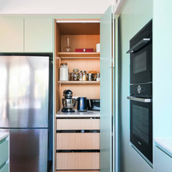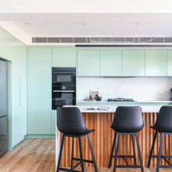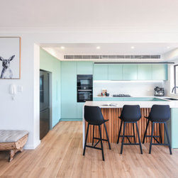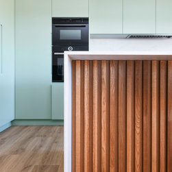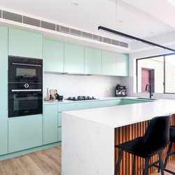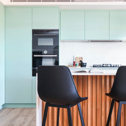 U-Shaped Kitchen | Touch Close Cabinets | Timber Battens | Double Bowl Vanity